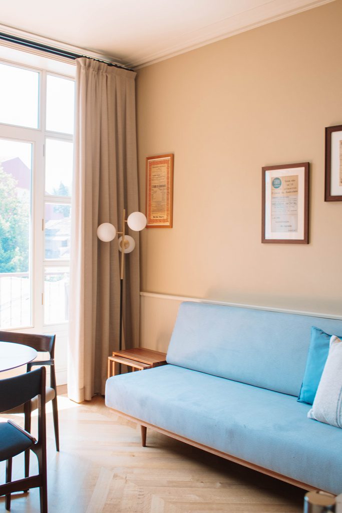 This apartment has one bedroom with a double bed. In the living room you have one sofa bed. This apartment is ideal for small families or young couples.